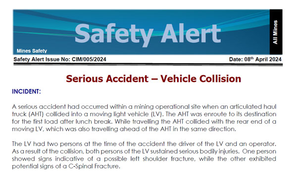 INCIDENT: A serious accident had occurred within a mining operational site when an articulated haultruck (AHT) collided into a moving light…